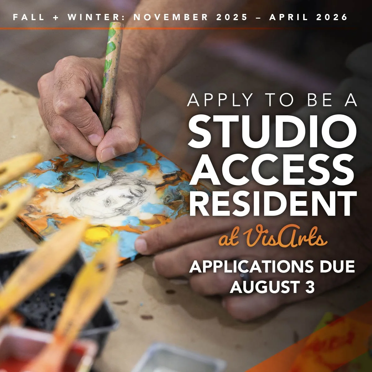 The Visual Arts Center of Richmond’s Studio Access Residency is designed to support emerging and established visual artists and writers as they develop new ideas and to foster artistic exploration by providing free access to VisArts’ 17 communal studio spaces.
