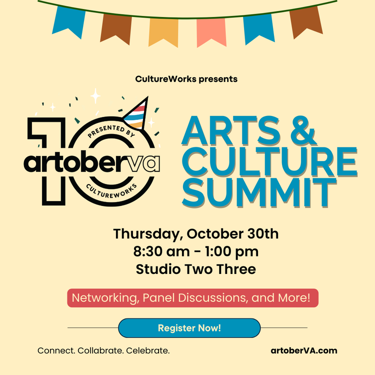 Artists and arts and culture professionals across the region are invited to join CultureWorks on Thursday, October 30th from 8:30a to 1:00p at Studio Two Three for the first artoberVA Arts and Culture Summit!